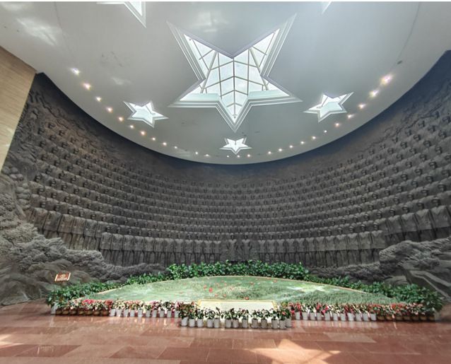 刚踏入纪念馆,庄严肃穆的氛围便让我们瞬间沉静下来。入口处“红旗不倒”的主题雕塑格外醒目,战士们紧握钢枪、冲锋向前的姿态,仿佛将我们拉回了那个战火纷飞的年代。跟着讲解员的脚步,我们沿着“苏区初创”“武装斗争”“军民同心”“精神永续”的历史脉络缓缓前行。泛黄的《苏维埃土地法》文件、布满弹痕的步枪、补丁摞补丁的军装、群众支援前线的扁担与粮袋……每一件展品背后,都藏着一段感人至深的故事。当听到讲解员说起“黄麻起义中,无数青年为了信仰抛头颅洒热血”“红军长征后,苏区群众冒着生命危险保护革命火种”时,我们的眼眶不禁湿润,更真切地读懂了“28年红旗不倒”的鄂豫皖奇迹背后,是无数人的坚守与牺牲。