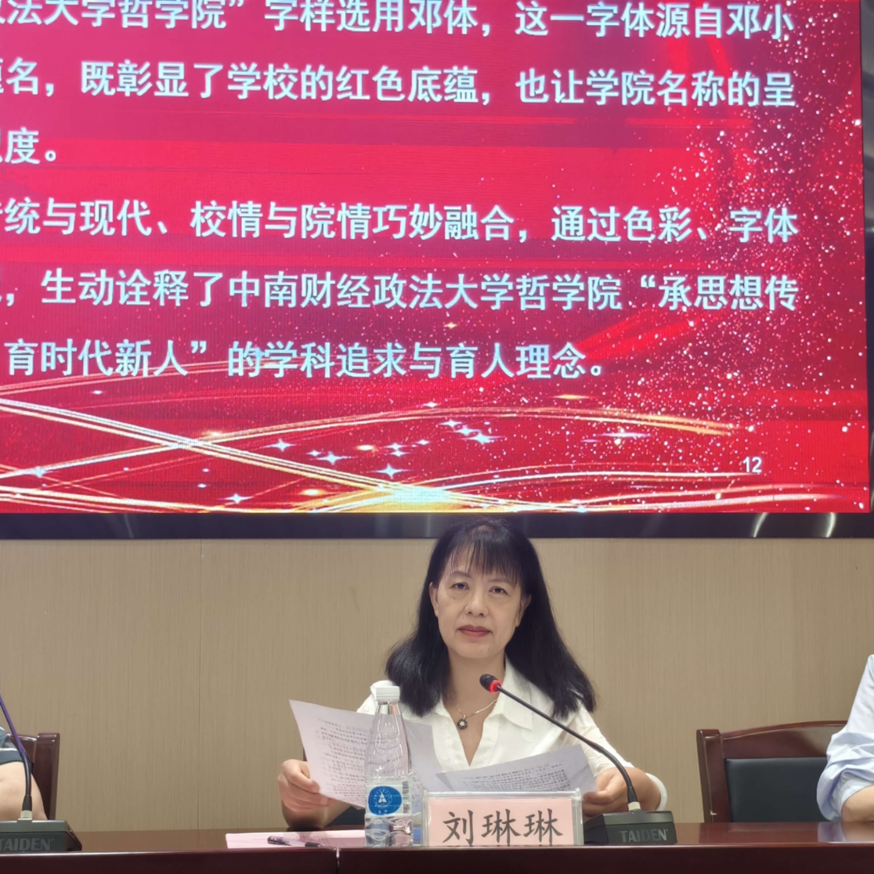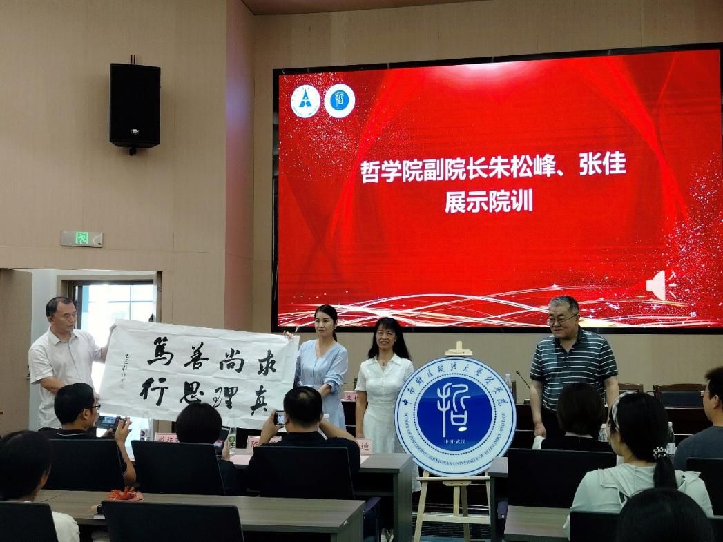 王雨辰院长、刘琳琳书记为院徽揭牌。朱松峰、张佳副院长现场展示了院训。