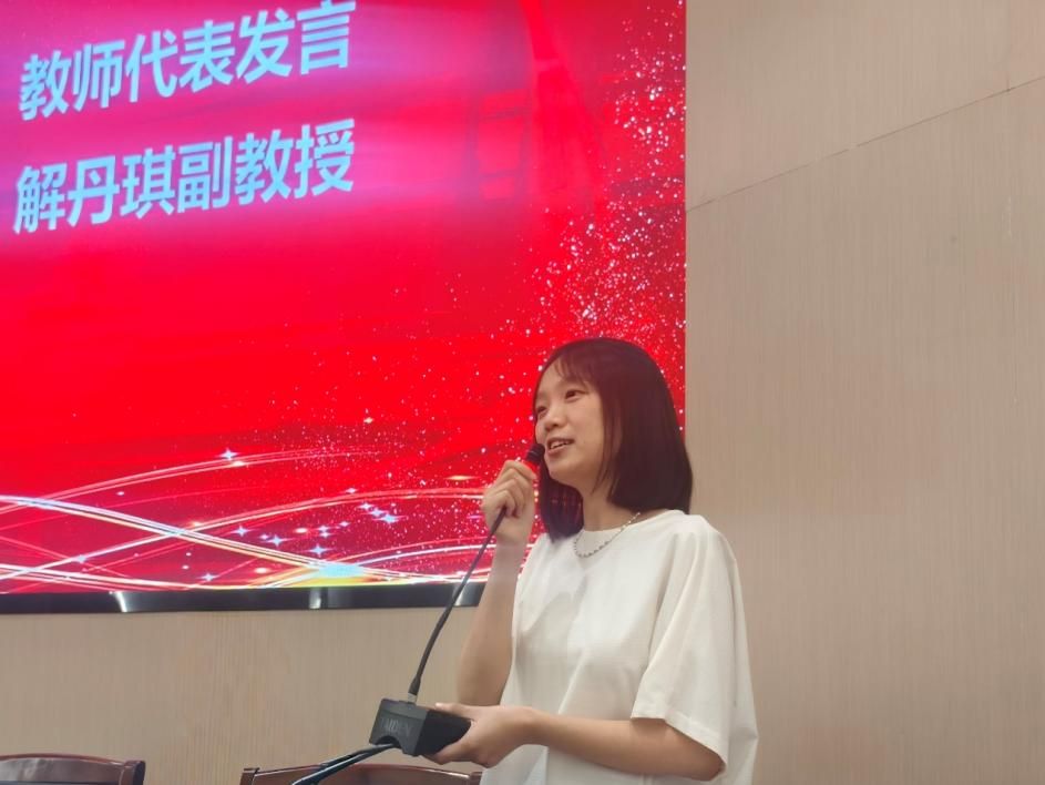 哲学系解丹琪副教授作为教师代表发言。解老师围绕“大学生活”和“大哲学”两个主题,引导同学们认识精神成长的重要性,寄语同学们在哲学院,找准人生方向,打造丰盈内心。