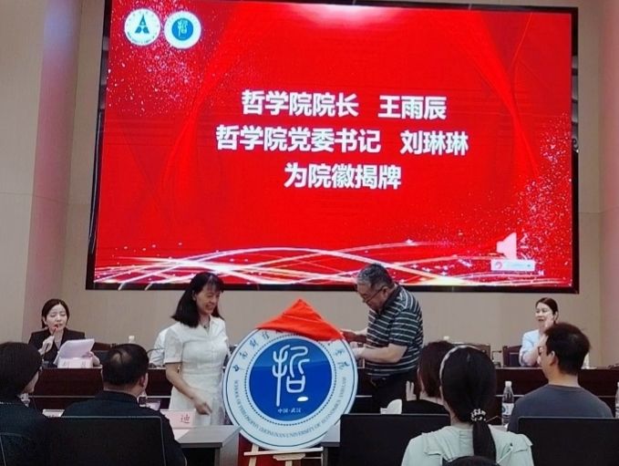 开学典礼后,我院隆重举行了院徽院训发布仪式。刘琳琳书记从内容、样式及内涵三个方面为现场师生解读了院徽院训的设计理念和深刻意蕴。其中,院徽设计融合传统与现代、校情与院情,“中南财经政法大学哲学院”字样采用源自邓小平同志为学校题名的邓体,既彰显学校红色底蕴,又让学院名称呈现庄重且具辨识度,整体设计生动诠释了学院“承思想传统,探学术真谛,育时代新人”的学科追求与育人理念。“求真尚理,善思笃行”八字院训则凝练了哲学院的育人方向与学术精神,为培养兼具思辨能力与责任担当的学子提供了指引。