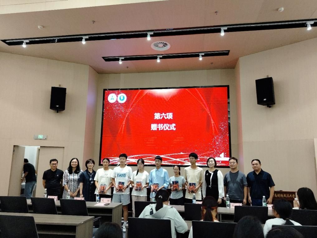 学院教师为六名新生代表赠送《社会契约论》以及学院文创产品。