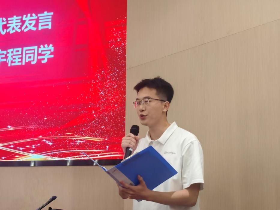 随后,在校生代表PPE2301班蔡宇程、新生代表国政2501班张钧涵同学依次发言。蔡宇程鼓励同学们做好“做人、做学问、做事情”三件事,在大学校园中练就过硬本领;张钧涵畅想了新生们的成长轨迹,做出了“以今日之所学,解时代之所问”的承诺。
