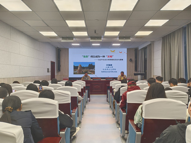 (通讯员 王汉卿)11月6日下午,上海大学马克思主义学院教授叶海涛教授应邀来到我院进行了一场主题为“‘生态’何以成为一种‘文明’——兼谈习近平生态文明思想的历史与逻辑”的精讲座。讲座由朱松峰教授主持,学院部分本科生和硕士研究生聆听了本次讲座。