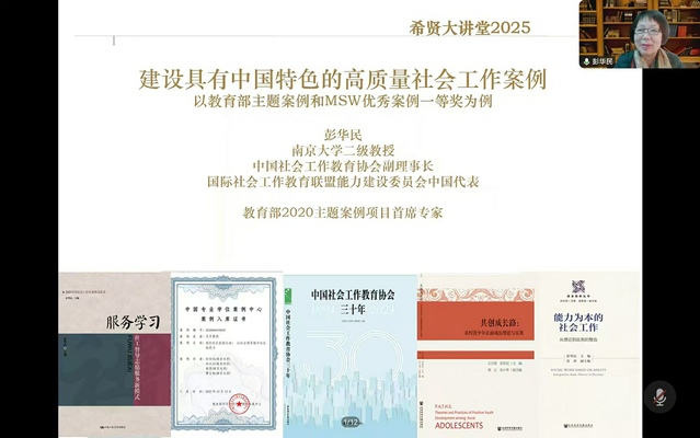 讲座伊始,彭华民教授以实践案例撰写的获奖和出版经验为切入点,介绍了教育部关于中国特色案例的政策要求,梳理了教育部研究生案例中心的案例库建设情况,解读了教育部主题案例项目的撰写要求。她认为,高质量的社会工作案例培育需遵循国家战略导向、社会政策导向、社会服务导向、教学和研究导向四大机制,体现真实性和客观性、典型性和完整性、时效性和导向性、现实性和行业敏感性、启发性与争议性五大特征。