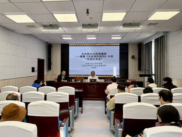 (通讯员潘佳莹)11月28日下午,中国人民大学哲学院李秋零教授来我院进行了一场主题为“从先验自由到道德律——康德《实践理性批判》中的‘因果性革命’”的讲座。本次讲座朱松峰副院长主持,学院部分老师、博士生研究生及硕士研究生聆听了此次讲座。