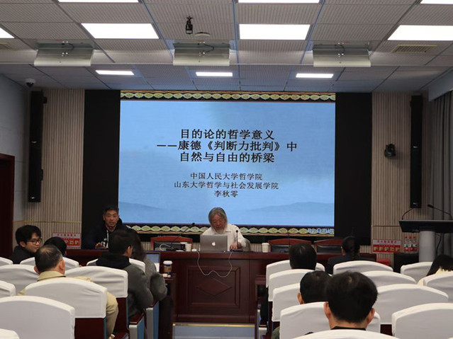 (通讯员 丁楠)11月29日上午,中国人民大学哲学院李秋零教授来我院进行了一场主题为“目的论的哲学意义——康德《判断力批判》中自然与自由的桥梁”的讲座。本次讲座由外国哲学刘斌老师主持,学院部分博士生、硕士生聆听了此次讲座。