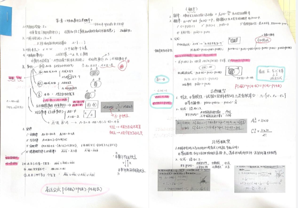 来自PPE2301班的董佳一同学,凭借着精美的笔记摘得本次大赛的哲学院一等奖。董佳一同学的《概率论和数理统计》笔记书写整洁美观,不仅将课程重点内容进行了全面且精准的记录,还巧妙地绘制了图形和粘贴例题以方便理解,并且用独特的色彩标注出重难点和易错点,将复杂的知识点梳理得清晰明了,让人一目了然。