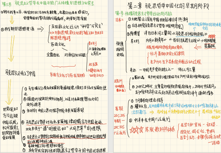 王璟怡同学的《马克思主义哲学史》胜在笔记内容丰富,重点标注清晰,相关内容补充和知识点总结到位,同时对知识点进行举例类比理解,例子具体且日常化,展现出对知识的深刻理解;