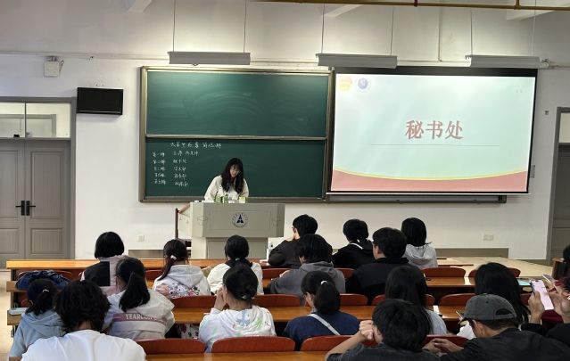 秘书处代表鹿杨汇报,在本阶段,秘书处协助了团学组织各部门的线上宣传工作,并组织开展团学组织招新大会,整理编撰了团学组织全体成员的办公室值班表以及通讯录。此外,秘书处完成了主席团会议记录工作与活动报账工作。下一阶段,秘书处的工作重心将聚焦于材料规范及团学组织会议筹备上。
