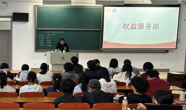 权益服务部代表李艺哲汇报,权益服务部在本阶段的工作中,以校园环境和生活服务两方面为切入点,组织“美丽校园,你我同行”志愿服务活动,完成了覆盖全院的查寝工作。接下来,权益服务部将继续进行月度查寝的工作,并将开展“美丽校园创建示范活动”。