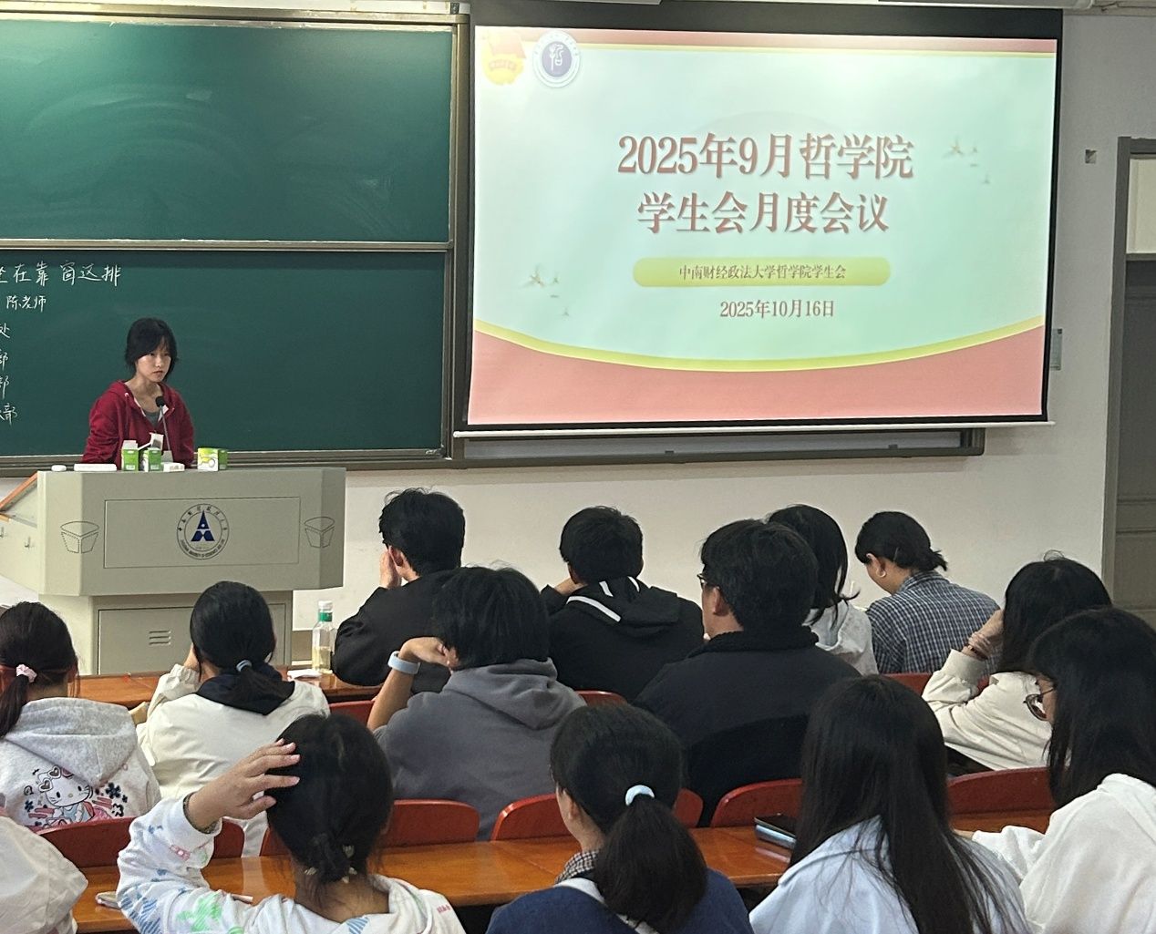 (学生通讯员:鹿杨、华梓涵/摄影:农茜予)九月勤耕植沃土,十月含笑撷硕果。10月16日14时整,哲学院于南附楼203举行学生会2025年9月月度会议。哲学院团委书记陈意萍、学生会主席团、学生会各部门干部、干事出席。本次会议由学生会秘书处副秘书长包莞尔主持。