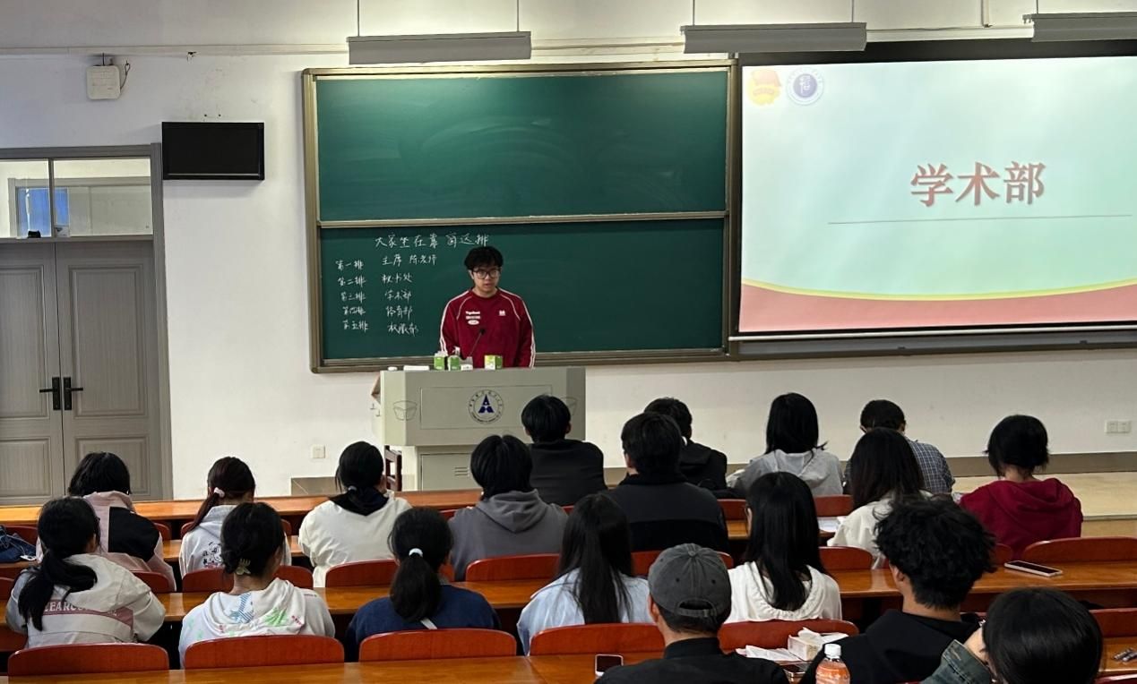 学术部代表刘凯汇报,学术部于本阶段的工作中,主要完成了包括部门招新、讲座筹备、“希贤杯”相关赛事举办、读书训练营筹备、希贤大讲堂讲座预告一系列任务,并将接续计划干事培训、读书训练营开营仪式、“学风建设月”相关活动。