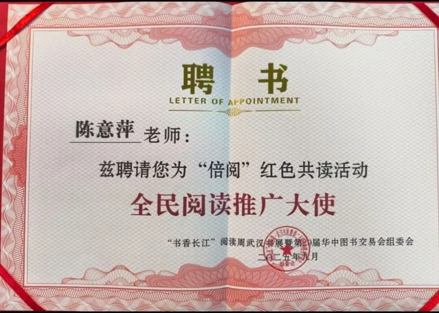 9月19日,在武汉国际会展中心举办的“书香长江”阅读周・武汉书展暨第二十届华中图书交易会上,“倍阅”红色共读・“学习强国”信仰之旅活动正式启动。湖北省委宣传部二级巡视员周凤荣,湖北长江出版传媒集团有限公司党委委员、长江出版传媒股份有限公司党委副书记、总经理李植以及湖北省委宣传部、团省委的相关领导参加了本次活动。我院团委书记陈意萍在启动仪式上被聘为湖北省高校“全民阅读推广大使”。