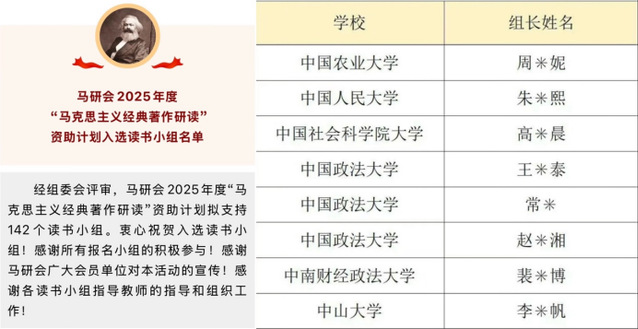 (通讯员 裴祎博)2025年10月19日,中国高等教育学会马克思主义研究分会正式公布2025年度“马克思主义经典著作研读”资助计划名单,我院“ZUEL希贤问道”读书小组成功入选。