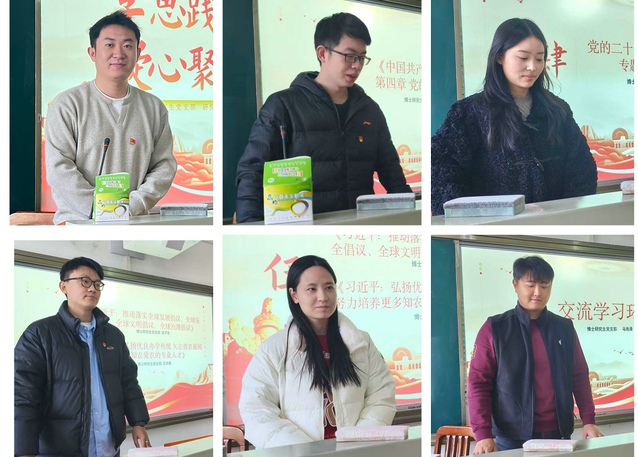 在“习近平总书记重要讲话和重要指示精神”专题理论学习环节,宫子言同志组织领学《习近平:推动落实全球发展倡议、全球安全倡议、全球文明倡议、全球治理倡议》,深刻阐明四大倡议的丰富内涵和实践要求。王子玥同志组织领学《习近平:弘扬优良办学传统 矢志强农报国 努力培养更多知农爱农的专业人才》,涵养支部党员们的知农爱农情怀。随后,马良泽同志针对上述学习内容发表学习体会。他认为,作为一名博士研究生,我们既要以理论清醒筑牢政治坚定,更要主动将哲学思维融入乡村振兴实践,把学习成果转化为服务国家发展、回应时代需求的实际行动。