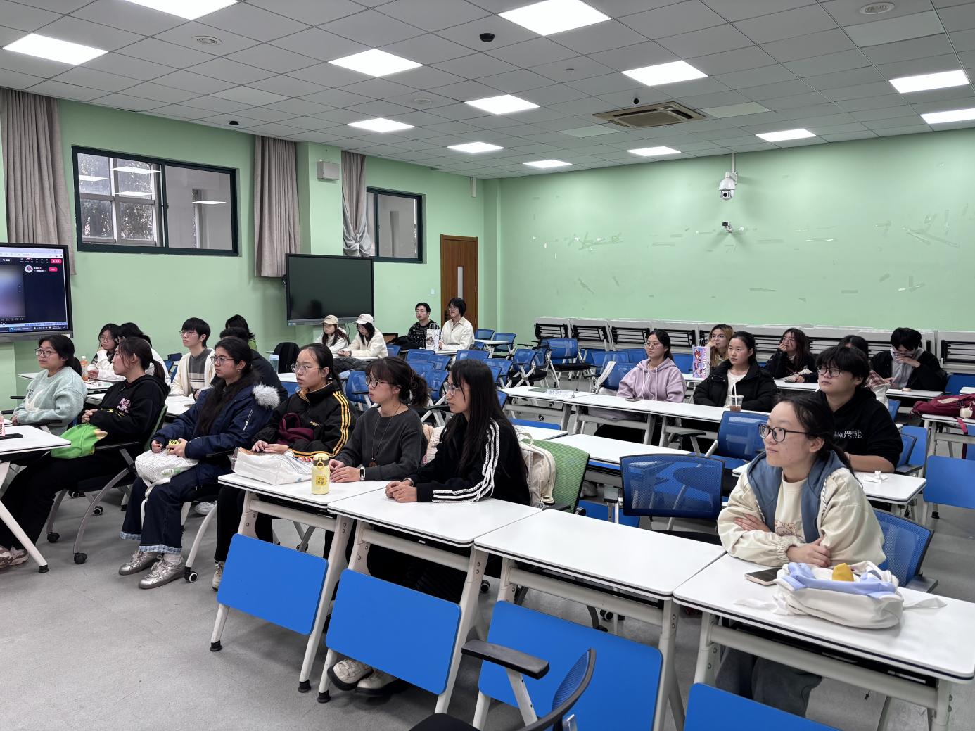 在“航天知识知多少”科普环节,团支书和同学们分享了趣味航天知识,如火星日落呈现蓝色,源于其稀薄大气层中尘埃对蓝光的散射;太空真空环境下,洁净的同种金属会发生‘冷焊’现象等。奇妙的航天常识让大家真切感受到宇宙的神秘与航天事业的伟大,现场氛围轻松而热烈。