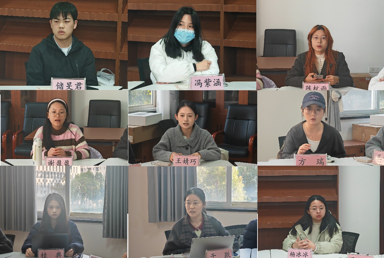 9位就业联络大使依次交流发言,分享了各自对接的同学的就业去向和考研、考公与就业的准备动态。部分同学已经完成就业签约,考研考公的同学每日规律复习,状态稳定。针对面临困难和仍然焦虑的同学,辅导员和就业联络大使也将重点跟进,帮助解决问题。就业联络大使也介绍了各自的近期安排与后续规划。