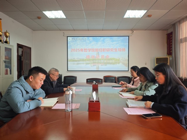 (通讯员 吴林)2025年12月16日上午,哲学院在文沛楼319会议室组织召开2025年新任职研究生导师培训动员会,学院刘琳琳书记、张佳副院长、新任职研究生导师陈国和、冯超及学院研工办工作人员共同参加,动员会由张佳主持。