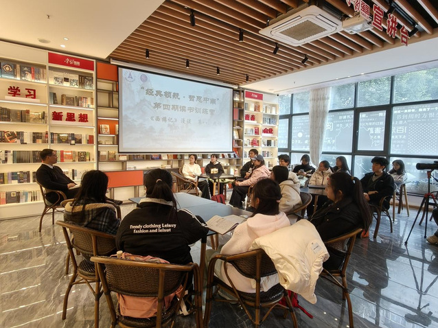 (学生通讯员:常永欣/摄影:李雨桐)12月18日下午,“经典领航·哲思中南”第四期读书训练营第八、九讲活动在南湖校区倍阅书店如期举行。湖北省新华书店倍阅高校校园文化服务平台运营总监王颖超老师作为主讲嘉宾,继续为营员们讲解吴承恩的著作《西游记》。本次课程王老师主要讲授师徒四人寻找真经的真实目的。