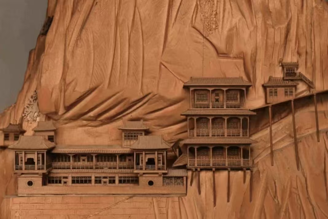 图1 山西大同悬空寺模型(晟龙木雕模型艺术有限公司制作)