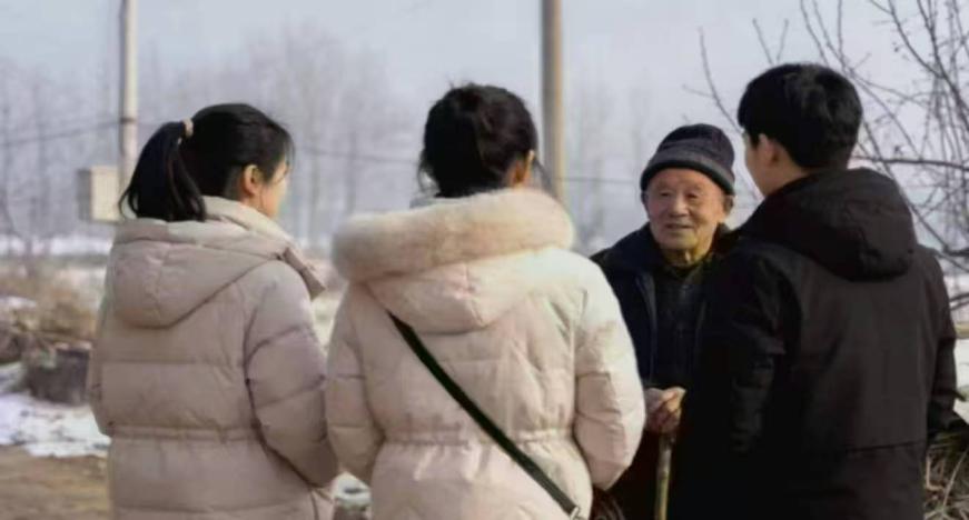 图2 实践队员在村头与老党员交流,聆听侏儒山战役的红色故事与村庄发展变迁