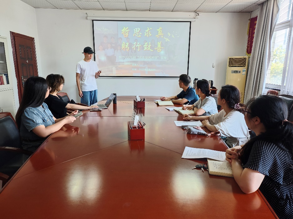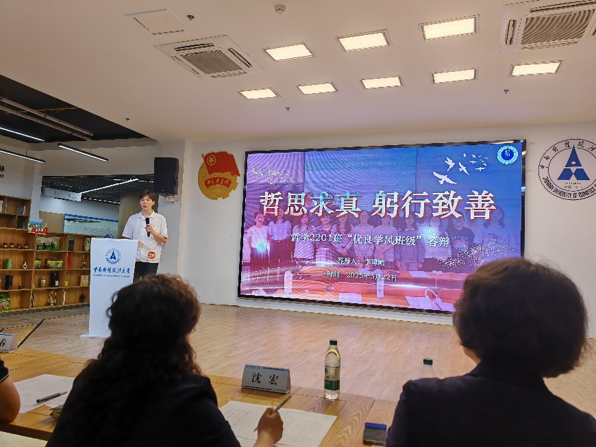 (通讯员:戴瑜桐)5月22日下午,中南财经政法大学2023-2024学年优良学风建设评选答辩会在文潭楼顺利举行。哲院学子表现优异,临湖3栋109宿舍、113宿舍双双荣获"优良学风宿舍"称号,哲学2201班斩获"书香班级"奖项。