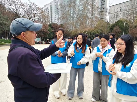 本次活动旨在提升手语协会成员的手语实践能力,增进对手语使用者的了解,同时促进社会对特殊群体的关注,弘扬关爱弱势群体的良好风尚。活动于上午11时圆满结束。志愿者们纷纷表示,通过此次活动,不仅提高了手语应用能力,更深刻体会到了沟通的多样性与包容的力量。此次“手语之约,爱心探访”活动的顺利举行,不仅搭建了青年学生与聋人群体之间的沟通桥梁,也用实际行动传递了理解、尊重与关爱的社会正能量。
