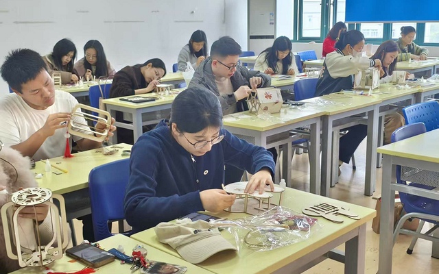在“非遗花草纸灯笼”制作环节,裴祎博同志详细讲解花草纸的非遗背景、文化价值和当代传承,演示抄纸,装饰花草灯等核心步骤。制作完成后,党员们围绕“花草纸灯笼”畅谈体会:“这次手工活动将传统文化与党性教育相结合,既增强了党员对非遗的保护意识、坚定了文化自信,又在手工协作中提升了党支部的凝聚力与向心力。”