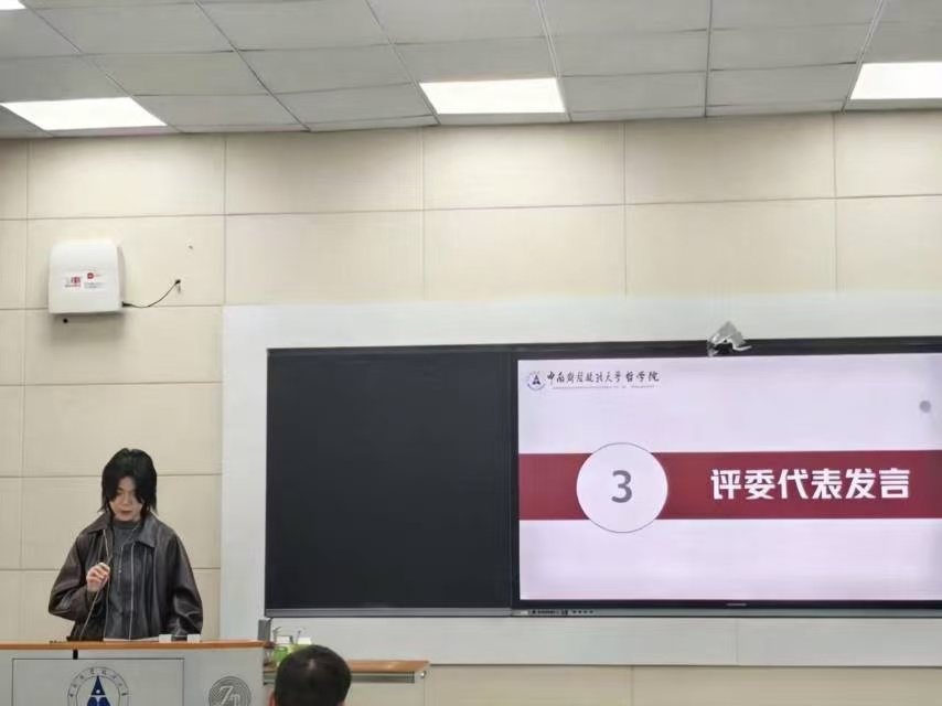 随后,来自中国地质大学公共管理学院辩论队的边子宸同学作为评委代表发言。边子宸讲述了自己在几届华中人文赛事中从选手到评委身份的转变,向全体评委发出倡议,仔细聆听、认真思考、公正评判,以客观、专业的解读为比赛增光添彩。