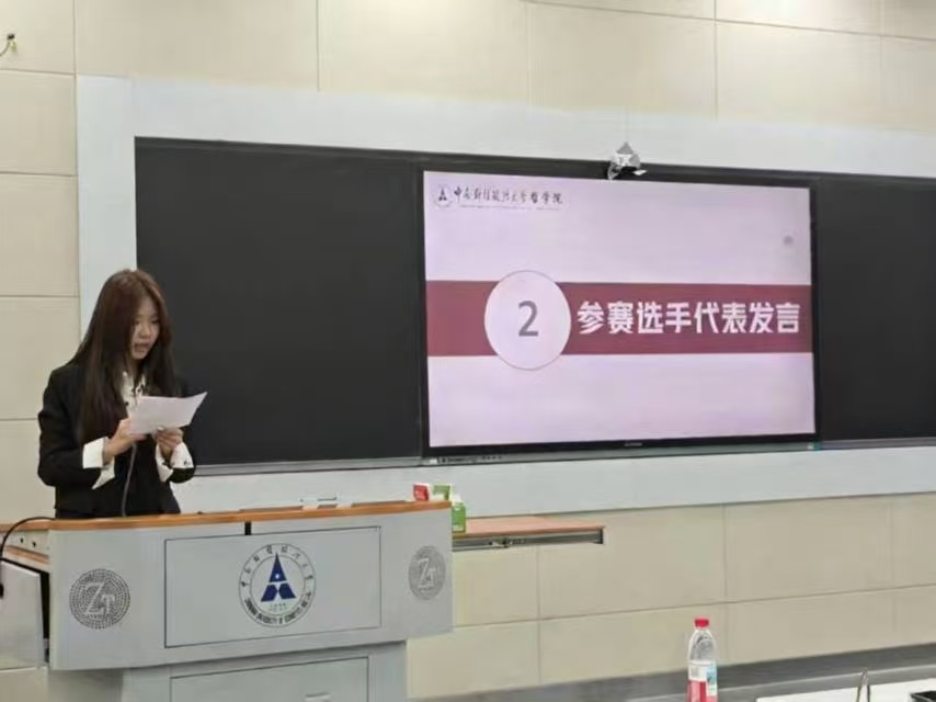 我院辩论队队员李思瑶作为参赛选手代表发言。李思瑶分享了自己与辩论结缘的过程及感受,要在赛场上聆听不同声音、汲取新的思路,与来自不同高校的辩友相互学习,共同进步,并祝愿所有选手都能在比赛中发挥出最佳水平,展现风采、收获成长。