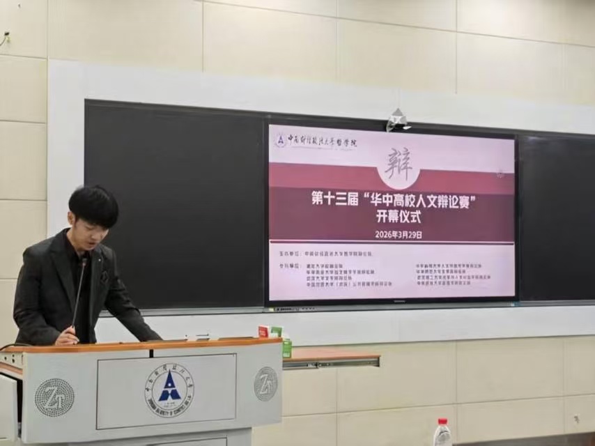 为弘扬思辨文化,加强思辨素质,落实智育工作,2026年3月29日下午,第十三届华中高校人文辩论赛开幕式在文波楼110教室顺利召开。我院团委书记汤彪,24、25级辩论队全体队员以及各兄弟高校参赛队伍出席了开幕式。开幕式由我院辩论队队长单政哲主持。