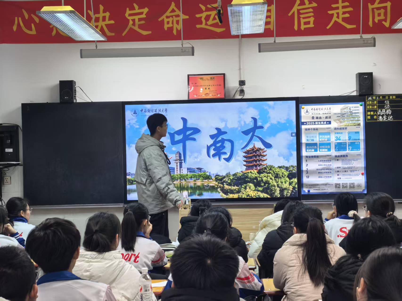 在宣讲过程中,通过对中南大历史底蕴、财经政法深度融通的特色、强大的师资及校友力量、优异的地理位置、丰厚的衣食住行条件等方面全面展开,李想同学结合自身实际感受,展现了一个令人向往的中南大。同时,他介绍了中南大在吉林省的专业分数线,以及报考上的优势等内容,为同学们解决了报考疑惑。