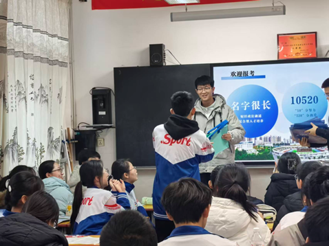 走进校门,来到恩师的办公室,仿佛又回到了那个和老师一起讨论问题的高中时代。师生之间寒暄一番,在老师的介绍下,李想走进了两个班级,进行深入地宣讲。他结合班级的不同情况,合理选用PPT,为同学们描绘了一个立体而又丰富的中南大。