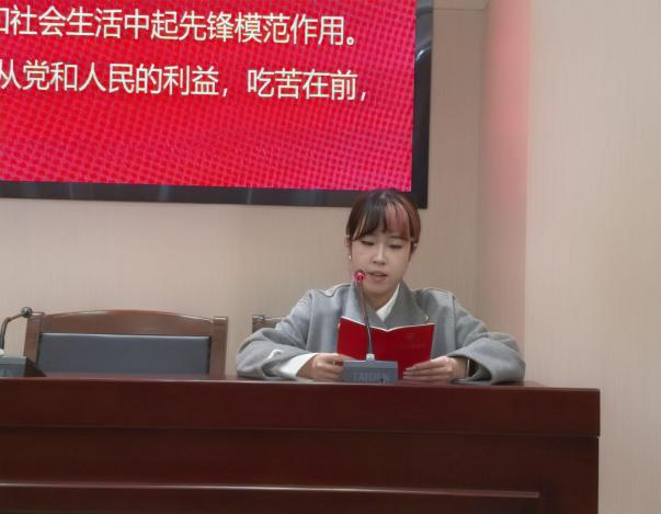 按照会议安排,研究生第三党支部书记孙诤诚组织重温党章部分内容,博士生党支部书记裴祎博组织领学习近平总书记重要讲话和重要指示精神,本科生第二党支部党员顾秋婕、研究生第二党支部副书记梁睿涵分别交流学习体会。